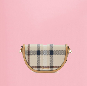 AQUASCUTUM雅格狮丹礼物送女友通勤休闲斜挎包格纹拼皮革月牙背包 米蓝格子